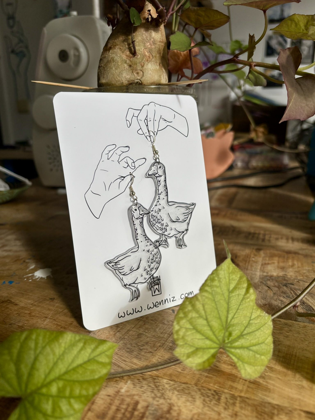 Boucles d’oreilles illustrées à la main en noir sur du plastique rétracté.